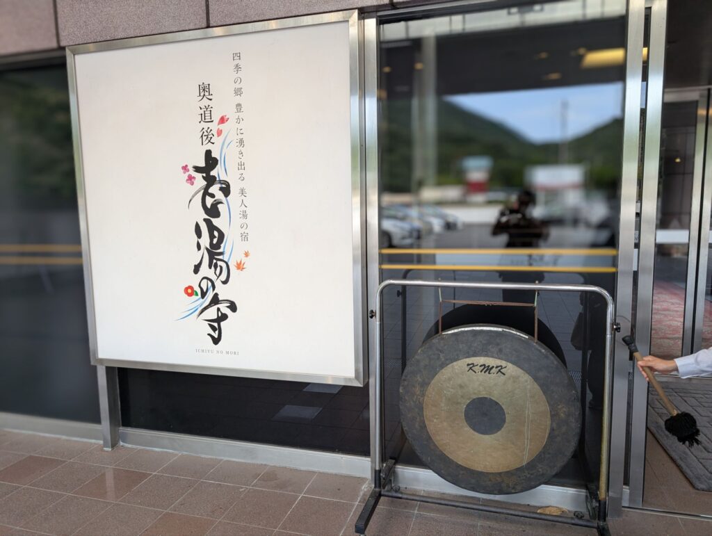 ホテルに入る時、スタッフさんが銅鑼を鳴らして歓迎してくれました。