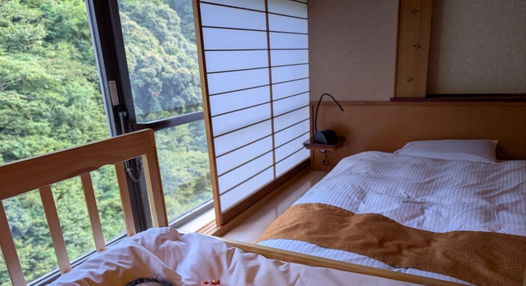 この家族風呂もかなり良く、広い畳の休憩スペースと、大きな露天風呂がセットになっていました。露天風呂からの景色も素敵でした。