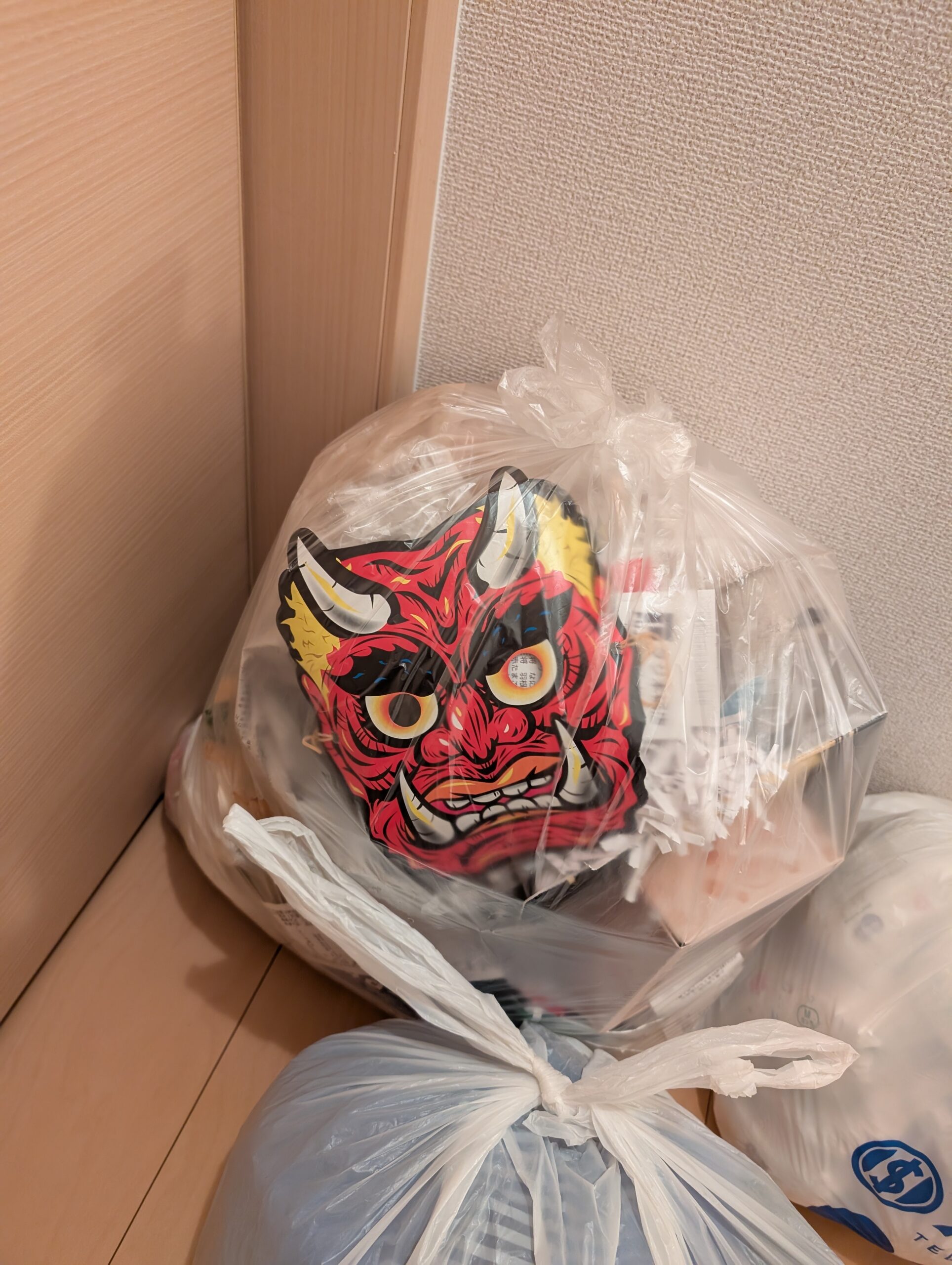ちょっとした紙のお面でしたが、娘にはとても怖い顔に見えたようで、ぎゃーっと泣かれました。